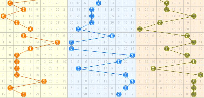 跨度:上期开出大跨5跨,从近期跨度开出看,跨度的振幅在慢慢减小,跨度在大小之间交叉开出,呈现W的形状,根据振幅落点,本期继续看好大跨,推荐跨度6、8、9。