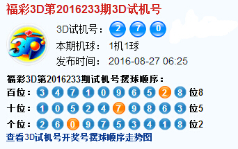 今日3d试机号的开奖号码是270,0号球目前是遗漏了10期了,是一个冷号,也是一个小号,上期开出了3个小号,所以本期的话0号球需要防一下;2号球是上期的开奖号码,也是重复号,本期需要关注;7号球目前是隔了2期了,而根据近期杀和尾的方法来看,近期杀和尾都命中,而上期的和尾是7,所以本期不看好7号球的开出。
