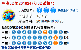 今日3d试机号的开奖号码是700,0号球跟7号球从3d走势图上来看,多少隔期的号码,根据近期开隔期号的现象来看,本期开出一个的可能性比较大,0号球跟7号球都要防一下,不过重点还是看好7号球的开出。