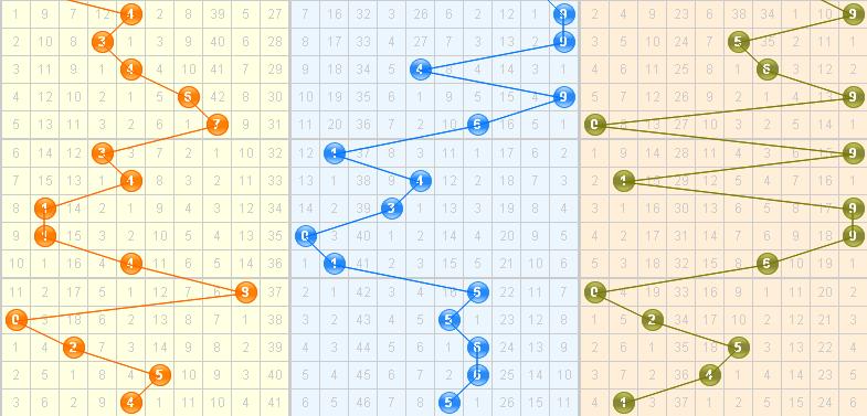跨度分析:上期开出跨度4跨,近期跨度再次慢慢向右走去,走向大跨度区域,本期推荐6、7跨。