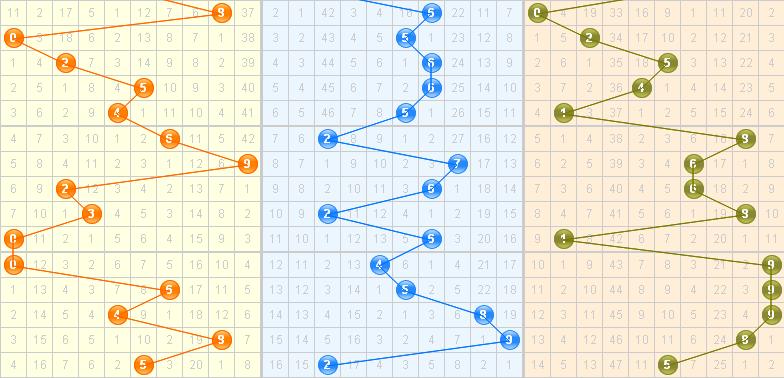 跨度分析:上期开出跨度3跨,近期跨度振幅有所增大,本期关注6、7跨防2、4跨。