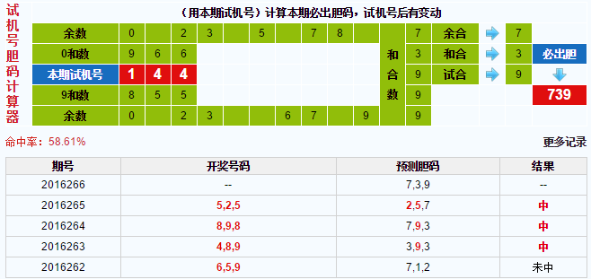 3D试机号胆码计算器:今晚必出胆码739