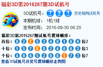 今日3d试机号的开奖号码是791,1号球跟9号球都是上期的开奖号码,本期的话重复号预计会开出1个,所以本期重复号需要关注;7号球目前是遗漏了9期了,是一个冷号,本期防一下。