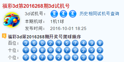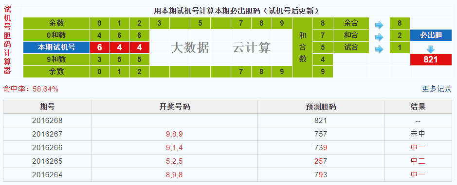 综上分析,再根据本站经过10年来的大数据,独创3d试机号智能计算器推算出本期胆码012458。