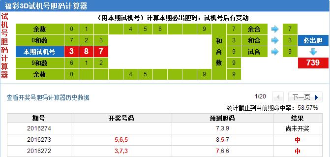 试机号胆码计算器分析: