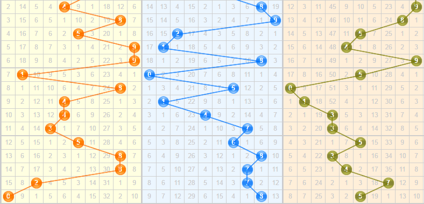 跨度分析:上期的跨度开出的是8跨,继续开出的是大跨,近期跨度有走热趋势,本期推荐关注跨度:2 6 7 。