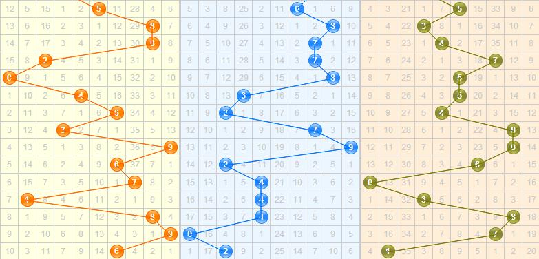 跨度分析:上期开出跨度5跨,近期跨度在左右来回拉动开出,本期继续关注大跨,推荐6、7、8跨防3跨。