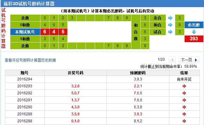 今晚的试机号开出组六645,是个三连号,本期建议个位重点关注中段位置号码的开出。近段时间的试机号胆码计算器也是很给力啊!到现在为止已经是连续六期命中了,不光如此,近三十期内也是命中的沾绝大多数,不过连续六期也算是近期的最高记录,今晚建议小防这两个胆码,不建议重点关注。
