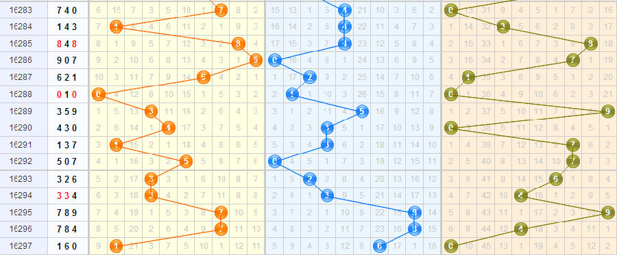百位本期开出小号位1,奖号下周期考虑小号开出,由于本期大振幅,下期看好小振幅,关注0路开出,推荐定位胆码0**;