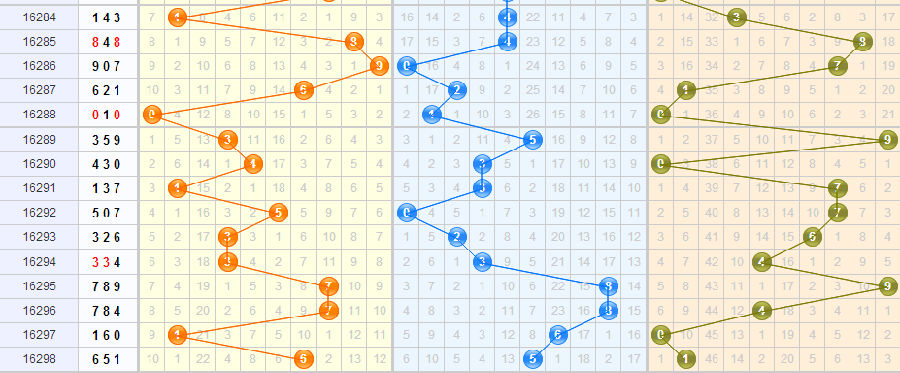 十位同上,近50期中,开出5有6、2、8、3有1次。首先排除2路的号,再排遗漏期数多的7、9,几率小的6、3,本期选择0、1、4。