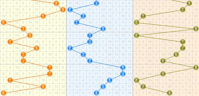 和值分析:上期和值为9,摆动方向落在第一区间内,根据走势,本期看好第二区间和值开出,推荐和值范围10-18。