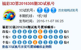 3d第2016305期试机号后北斗星预测分析: