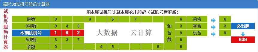 本期3d试机号胆码计算器给出的结果是639,给出了一个全0路的号码,我们先从走势图来看这三个号码,3号球和9号球都是目前的冷号,遗漏期数都已经达到了两位数,本期防这两个号码是没有错的,而6号球最近开出比较多,目前间隔1期,上一次开出就是在间隔1期的时候,所以关注6号球也没有错,同样的5号球也应该关注。