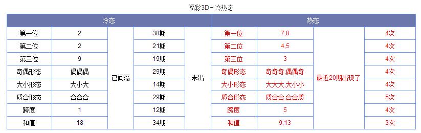 上图中是一个福彩3d冷热态表,从表中我们可以看到各个冷热号的情况,非常的明显。