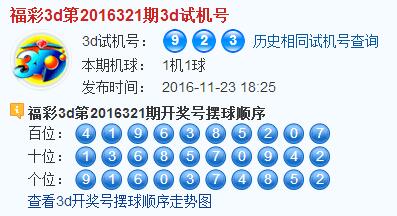 3d第2016321期试机号后北斗星预测分析: