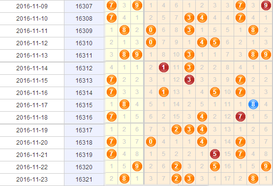 跨度分析:看总跨度走势图,跨度已经接连开出两期,都是大数,斜连号和邻号的趋势都还不错,上期跨度为6,可以关注一下跨度5,7近期有开出邻号的记录,也可以关注一下。