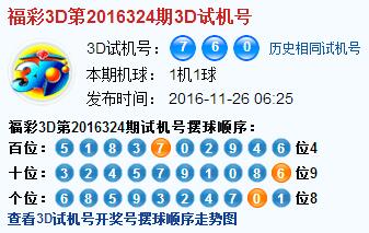 3d第2016324期试机号后北斗星预测分析:
