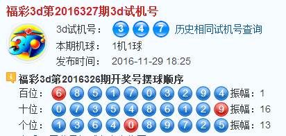 福彩3d第2016327期试机号:347