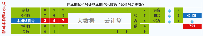 3d试机号胆码计算器:今晚必出胆码721
