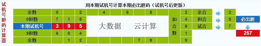 3d试机号胆码计算器:今晚必出胆码257