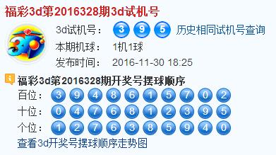 福彩3d第2016328期试机号:395
