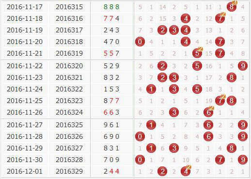 根据圆周率定胆,上期开奖号加十位数字加982的和除3.14,(244+4+982)/3.14=391,得胆码数字1 3 9。