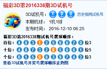 今日3d试机号的开奖号码190是,结合3d试机号和近期开奖结果分析:1虽说是近期冷号,但它的邻码均有开出,邻码2还是本期重复号。可以稍加注意开奖向1的转移。9是本期重复号,并且上期出现是以对子加连开形式出现;从近五期的走势来看,9一共出号3次,加上本期试机号的开出,表现得十分凶猛。0作为本期隔期号,上次出号是作为重复好开出;从近五期的开奖数据看到,无期内0开奖3次,可谓来势不小;本期试机号开出0,也是说明0在本期的蠢蠢欲动。