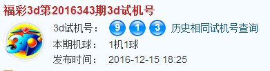 福彩3d第2016343期试机号:913