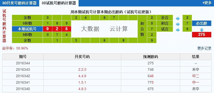 3d第2016344期3d试机号后北斗星预测分析: