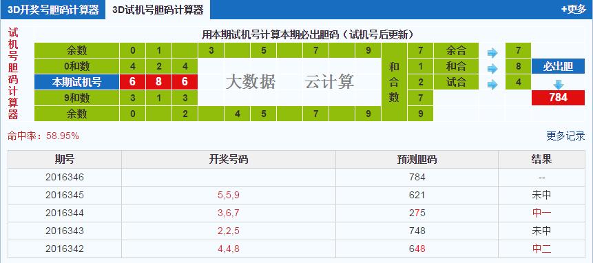 3d第2016346期试机号后北斗星预测分析: