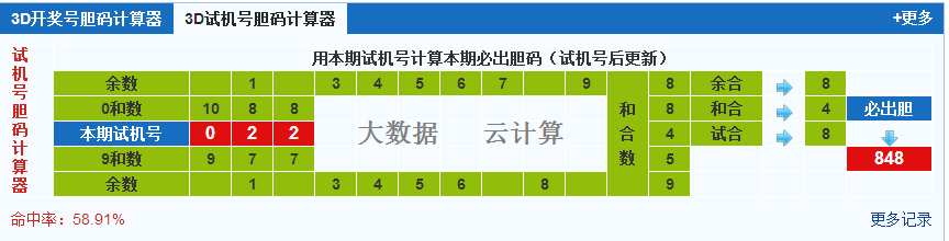本期试机号胆码计算器推荐胆码:848