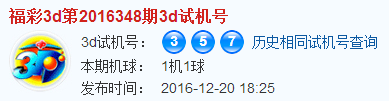 根据以上3d试机号开奖结果分析,今日3d试机号的开奖号码是357,本期的试机号开出了奇奇奇组合,近期偶数的走势比较热门,本期的试机号是否在暗示奇数要开始出现了,本期看好奇数的开出。
