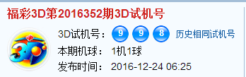 福彩3d第2016352期试机号:998