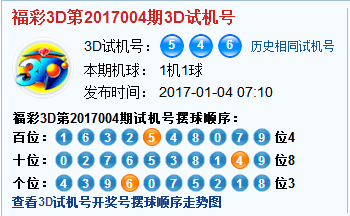 福彩3d第2017004期试机号:546