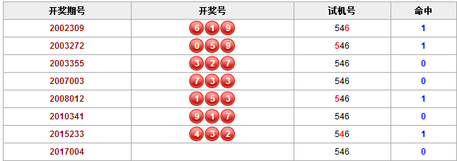 开奖期号2002309 开奖号619 试机号546 命中1