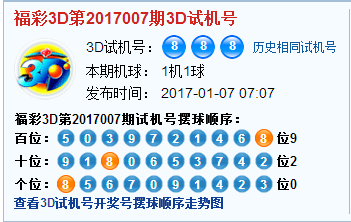 福彩3d第2017007期试机号:888