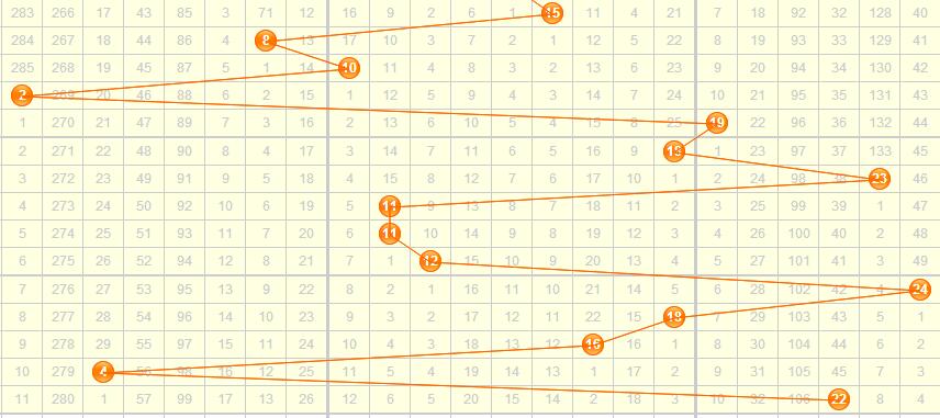 在除3余数走势中,上期开出余1路,本期依其走势推荐余2、0路;依其上面分析,除3余2、0和值推荐:12、14、17、20。17011期和值依其走势关注12、14、17、20。重点关注和值14、17、20。
