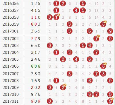 第17011期开奖结果为:909;奇偶形态:奇偶奇;大小形态:大小大;和值:18;跨度:9