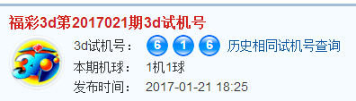 福彩3d第2017021期试机号:616