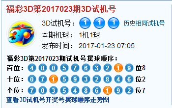 根据以上3d试机号开奖结果分析,今日3d试机号的号码是111,本期的试机号开出了小小小的的豹子形态,从近期3d号码的出号走势来看,组三有三期没有开出了,试机号开出了豹子,不如退一步,本期看好组三开出。1号球是上期开奖号0号球和2号球的共同邻码,所以本期重点关注1号球的开出。