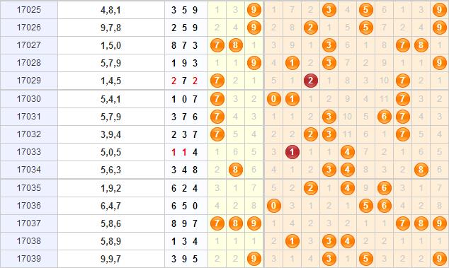 跨度走势分析:近5期跨度呈现4-6-2-3-6,近期跨度又开始往回走势,且振幅点数依旧没有超过3点,按照这一情况推断,本期跨度在3-9之间了,尤其看好457。