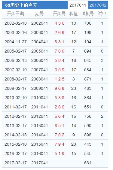 福彩3d第041期历史上的今天汇总:
