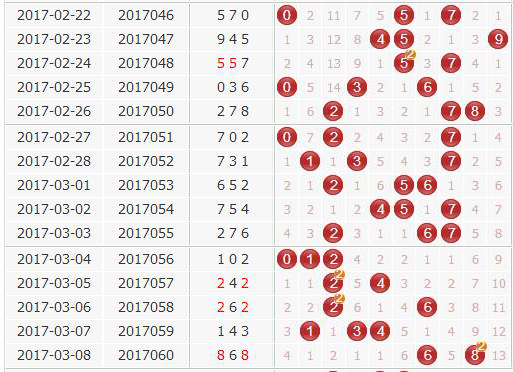 奇偶分析:近5期奇数开出3枚,偶数开出11枚,奇偶出号数之比为3:11,偶数的总体出号形势占优势,近10期两奇一偶形态开出2期,两偶一奇开出4期,全奇开出1期,全偶开出3期,上期开出了全偶的组合,不过奇数在慢慢的出号中,本期关注两奇一偶防全奇。