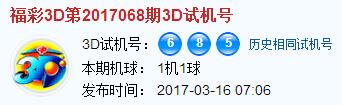 福彩3d第2017068期试机号:685