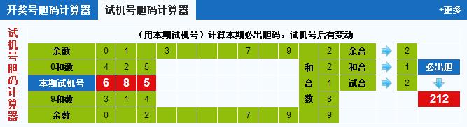 3d试机号胆码计算器:今晚必出胆码212