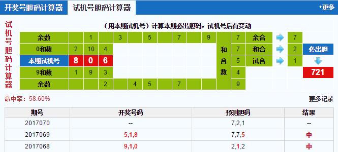 福彩3d第2017070期试机号:806