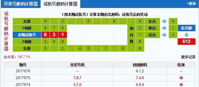 结合试机号胆码计算器来看,6号球虽然上一次开出是间隔了6期,走势没有非常热,但是6号球是一个非常容易开出隔期号的号码,本期也看好6号球的隔期开出;1号球的当前遗漏是3,之前1号球有间隔三期开出过,可以关注一下3号球的开出;2号球最近走势比较冷,开出的力度不大,本期不是很看好。