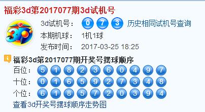 福彩3d第2017077期试机号:073