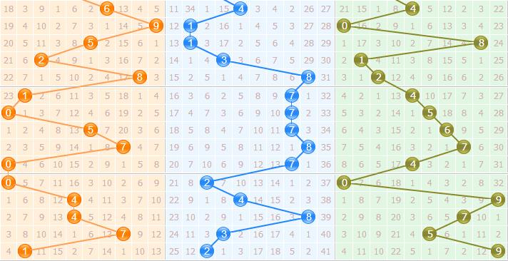 三、最后来看个位的情况,近期个位上大数突然发力连开,上期再次走回了9号位置上,本期主要防小数的反弹,重点盯防0号和2号。