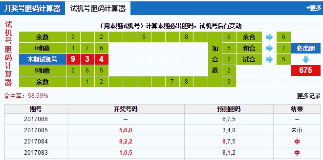 结合试机号胆码计算器来看,6号球是上一期的开奖号,分析6号的走势来看,6号之前没有开出过重复号,本期不看好6号的重复开出;7号球已经有连续5期没有开出了,之前7号开出的那么强势,本期需要严防7号的开出;5号球最近连开的能力很强势,而且开出的非常热,本期看好5号球。